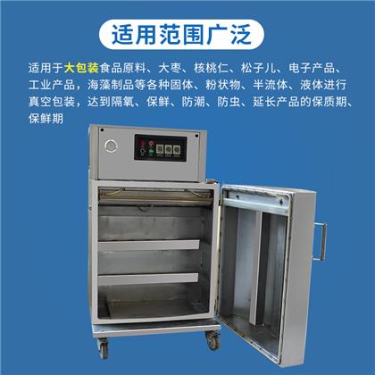 立柜式真空包裝機采用優(yōu)良不銹鋼材料結(jié)構(gòu),主要用于粉末、顆粒、半流體或大包裝物體的真空包裝。該機型真空室容積大,袋口立封形式??蛇B同產(chǎn)品外包裝(如:箱、桶、盒)。直接擱置于真空室內(nèi),抽真空,封口,冷卻,放氣,全過程均可自動控制及完成。開門式的操作形式,便于重物擱置。(該型機可根據(jù)用戶特殊尺寸、配置要求定做)。